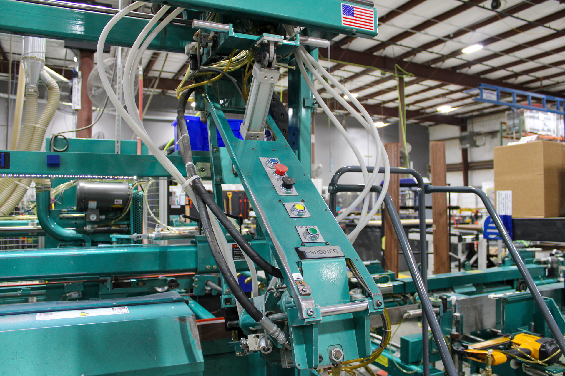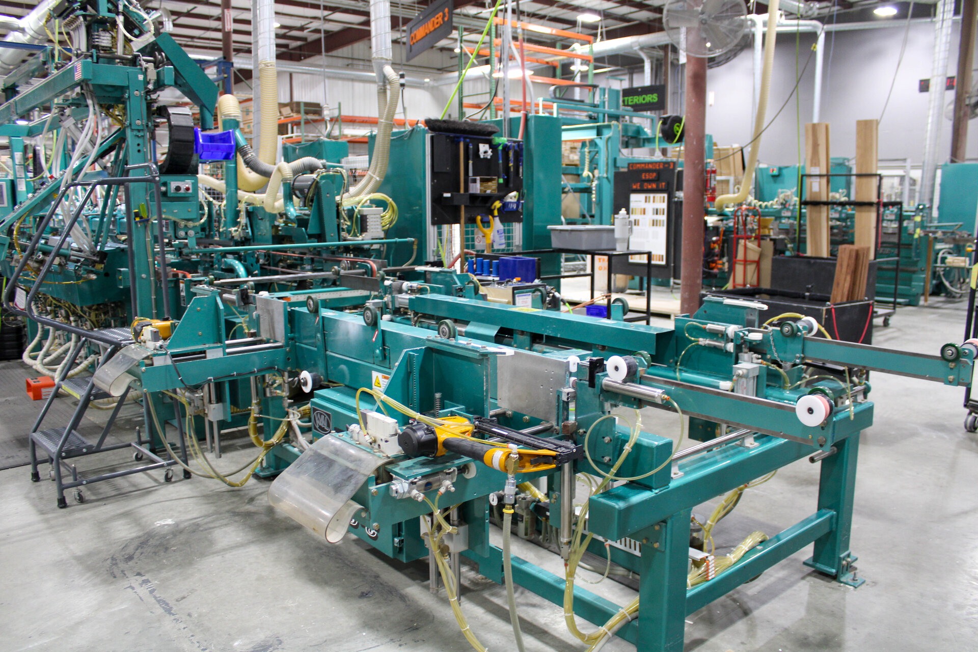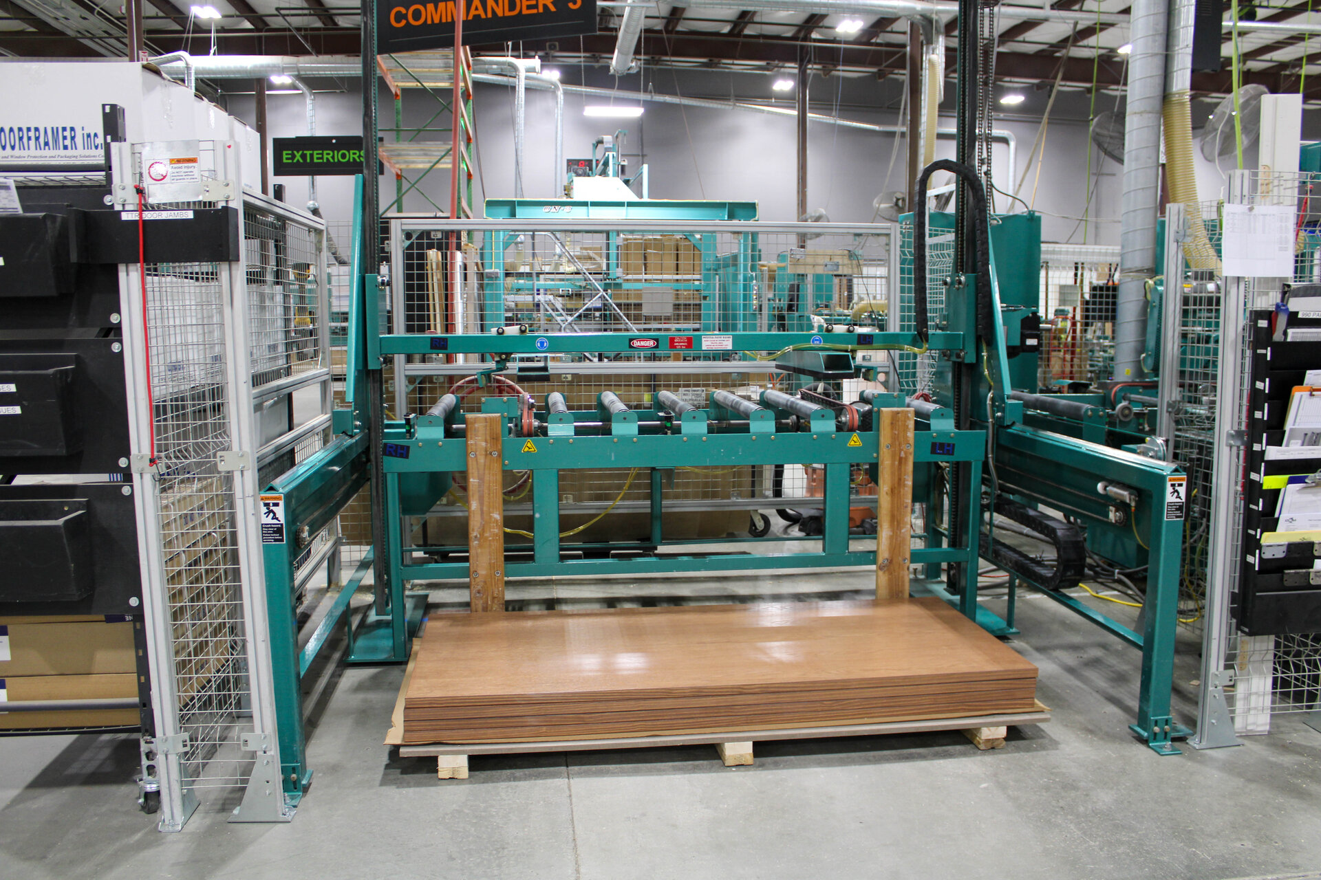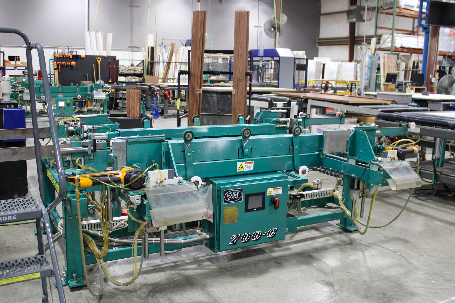 KVAL’s 990-F4 is the perfect marriage of our high-speed pre-hanging line with the additional flexibility to machine 6’8” doors for three hinges and 8’0” doors with four hinges. Changeover from one door height to the other takes only a couple of minutes and requires no tools. For even greater flexibility this 990-F4 is equipped with the Six-Shooter to install 3-1/2” x 3-1/2” hinges. This line includes a Handler Door Feeder and 700-C Assembly Machine.