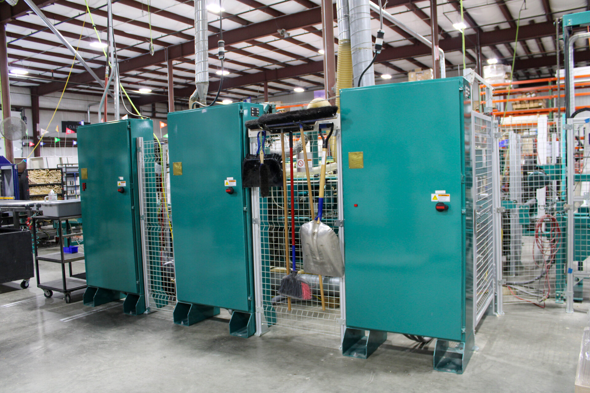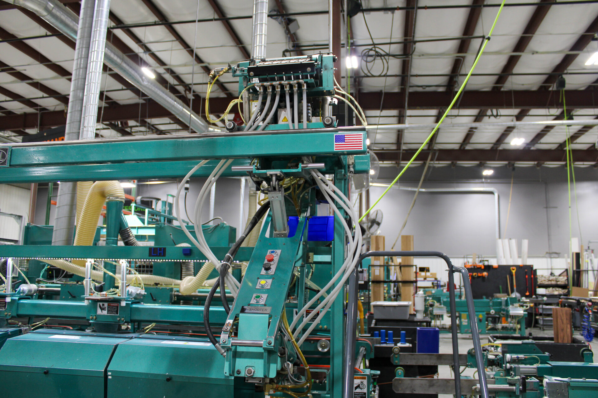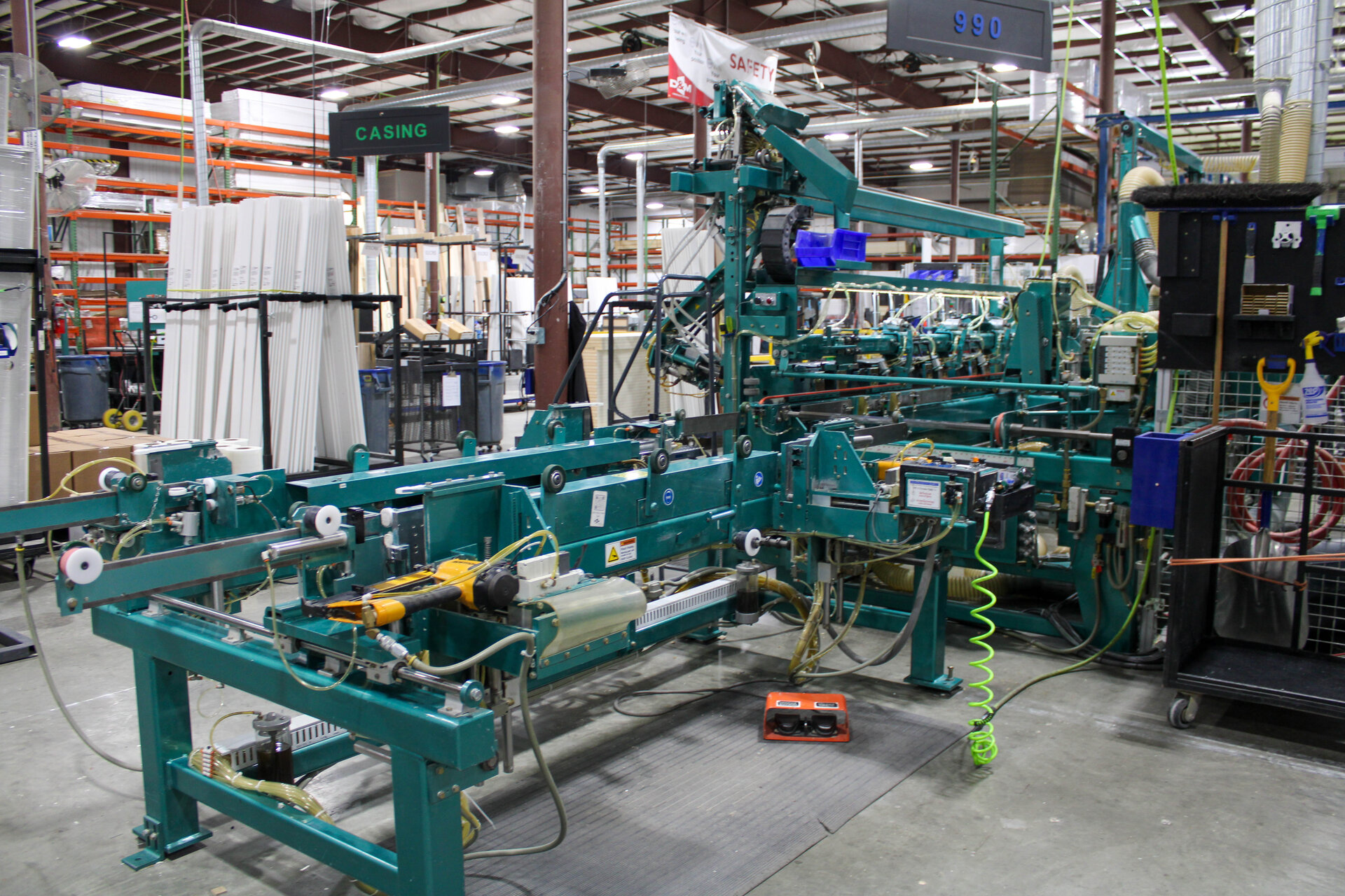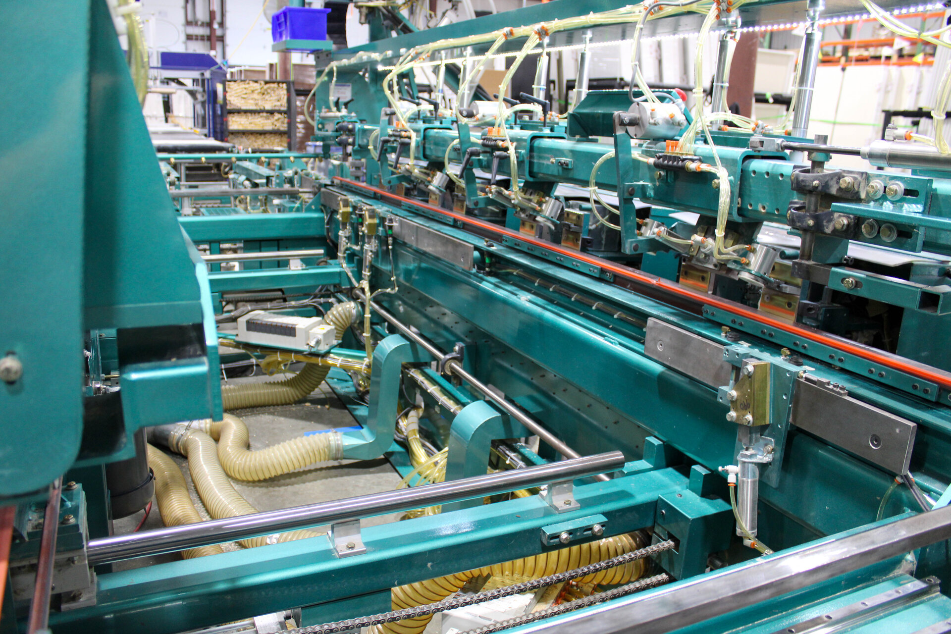 KVAL’s 990-F4 is the perfect marriage of our high-speed pre-hanging line with the additional flexibility to machine 6’8” doors for three hinges and 8’0” doors with four hinges. Changeover from one door height to the other takes only a couple of minutes and requires no tools. For even greater flexibility this 990-F4 is equipped with the Six-Shooter to install 3-1/2” x 3-1/2” hinges. This line includes a Handler Door Feeder and 700-C Assembly Machine.