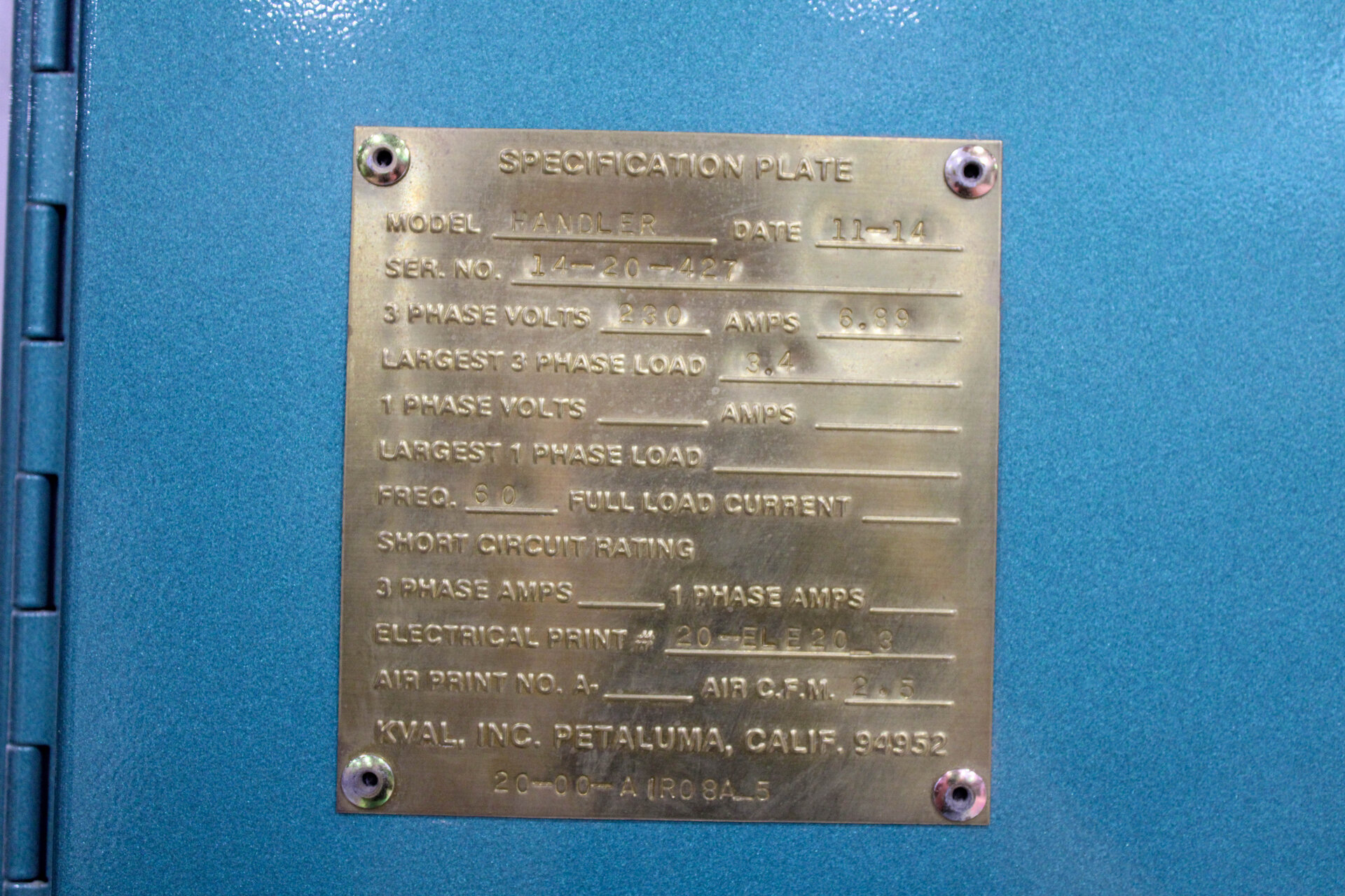 Operating the 700-C includes placing the strike jamb and header into the machine and clamping into place. The door, with hinge jamb installed, is then moved into position, gently lowered into place, and then securely clamped into position. Two-Hand control Palm Buttons activate the clamping sequence and vertically move staple guns into position to attach the jambs to the header. Activating staple gun “fire” sequence is initiated with one palm button and the “fire guns” push-button on the control panel on machine. The door is then raised and rolled out of the machine to the next station to the packaging station.